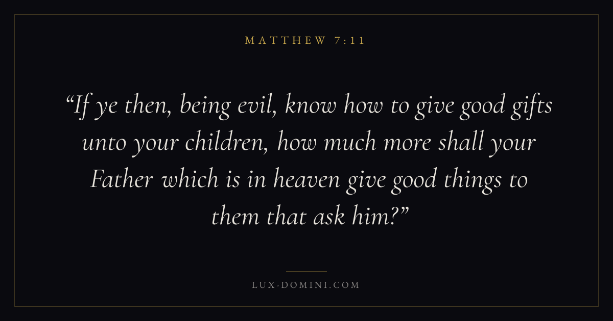 If ye then, being evil, know how to give good gifts unto your children, how much more shall your Father which is in heaven give good things to them that ask him?