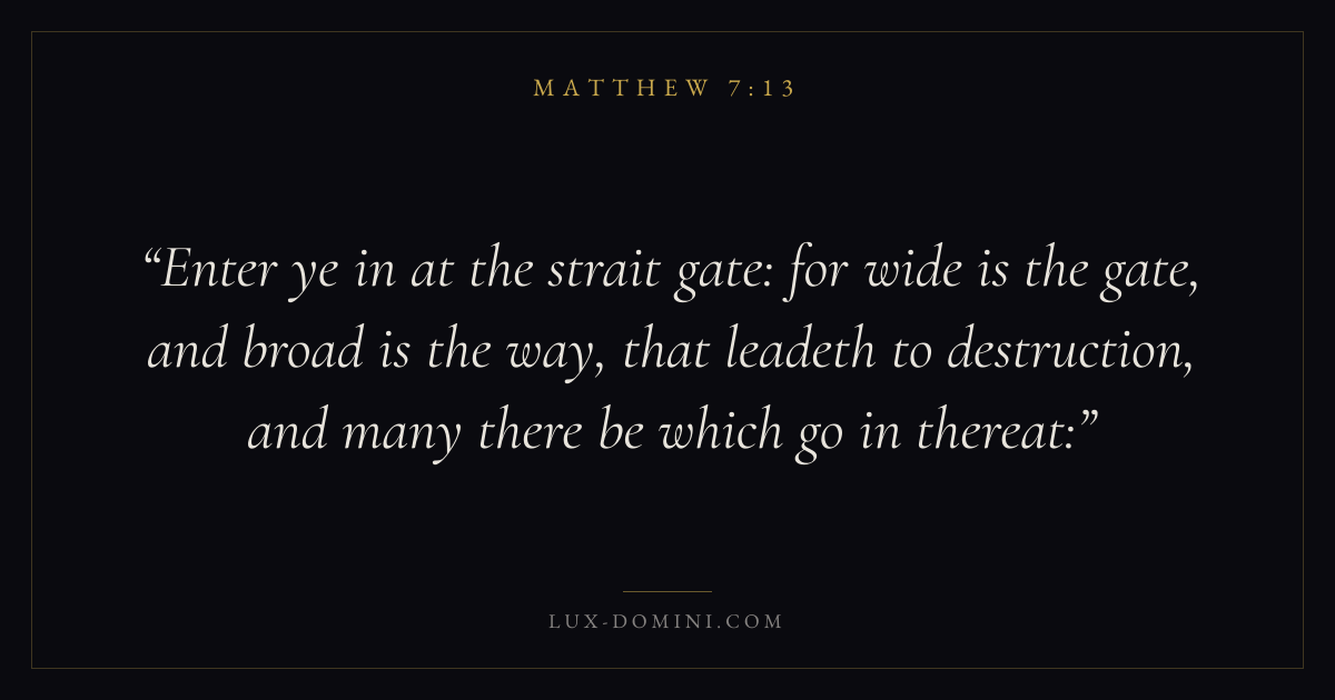 Enter ye in at the strait gate: for wide is the gate, and broad is the way, that leadeth to destruction, and many there be which go in thereat: