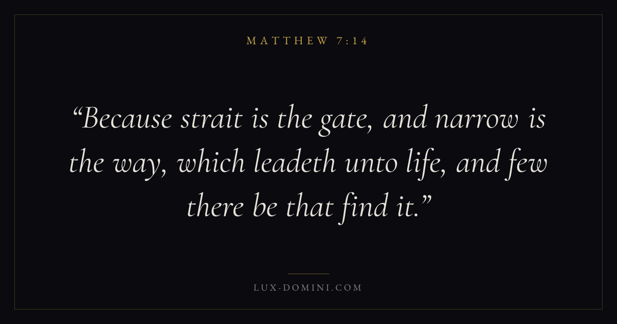 Because strait is the gate, and narrow is the way, which leadeth unto life, and few there be that find it.