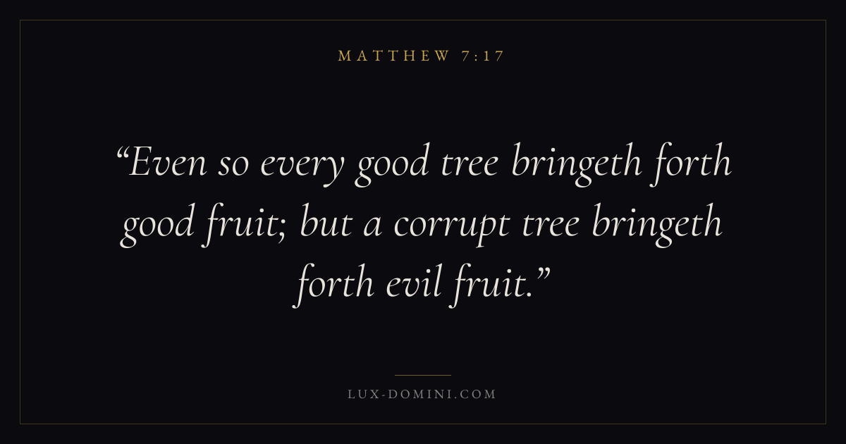 Even so every good tree bringeth forth good fruit; but a corrupt tree bringeth forth evil fruit.
