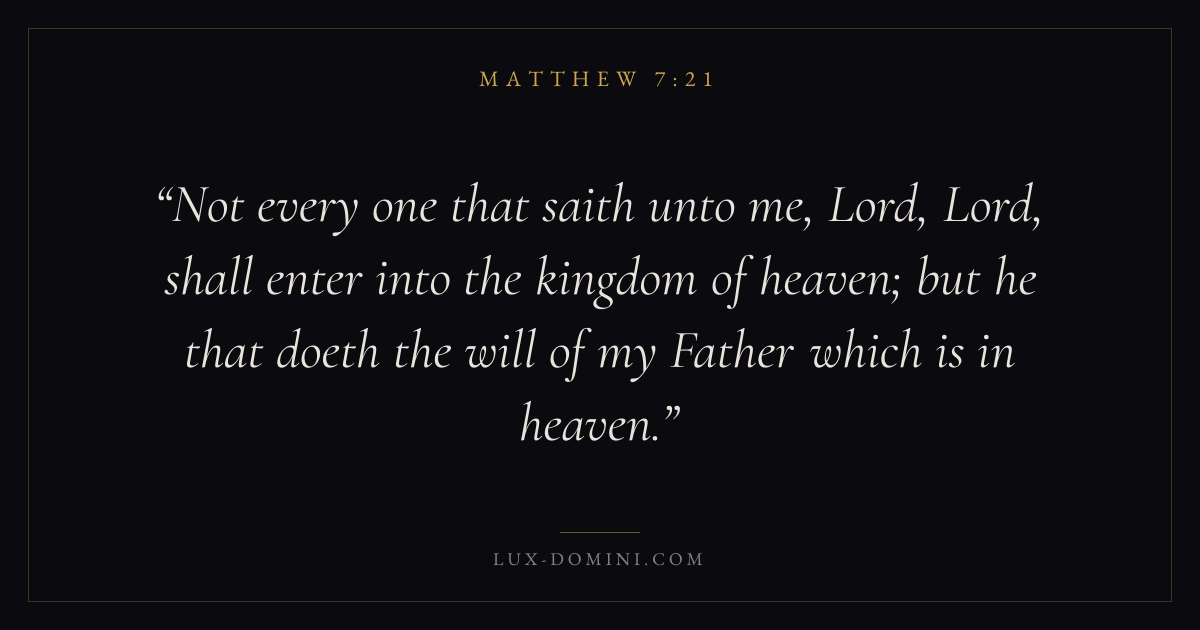 Not every one that saith unto me, Lord, Lord, shall enter into the kingdom of heaven; but he that doeth the will of my Father which is in heaven.