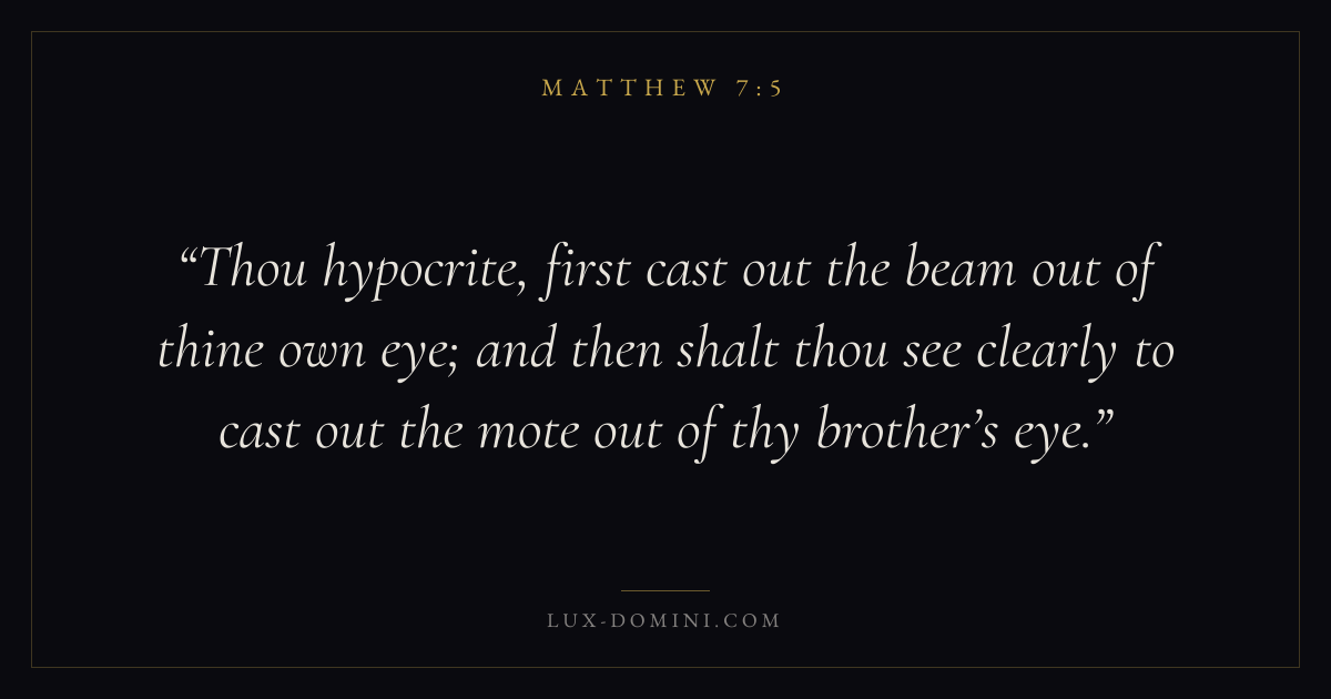 Thou hypocrite, first cast out the beam out of thine own eye; and then shalt thou see clearly to cast out the mote out of thy brother’s eye.