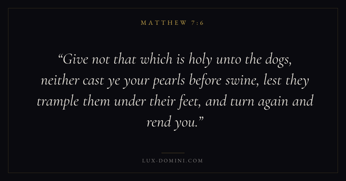 Give not that which is holy unto the dogs, neither cast ye your pearls before swine, lest they trample them under their feet, and turn again and rend you.