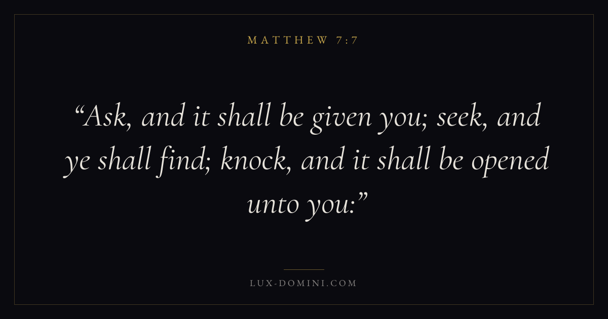 Ask, and it shall be given you; seek, and ye shall find; knock, and it shall be opened unto you: