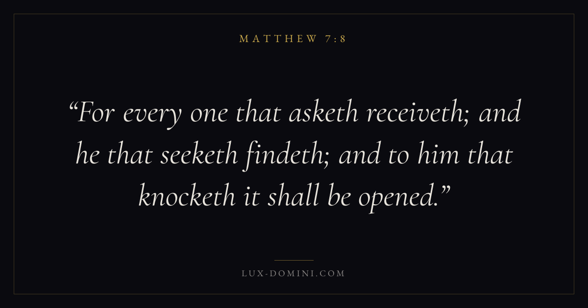 For every one that asketh receiveth; and he that seeketh findeth; and to him that knocketh it shall be opened.