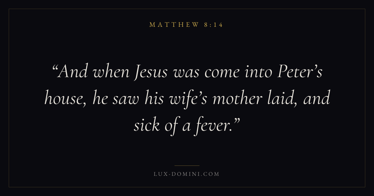 And when Jesus was come into Peter’s house, he saw his wife’s mother laid, and sick of a fever.