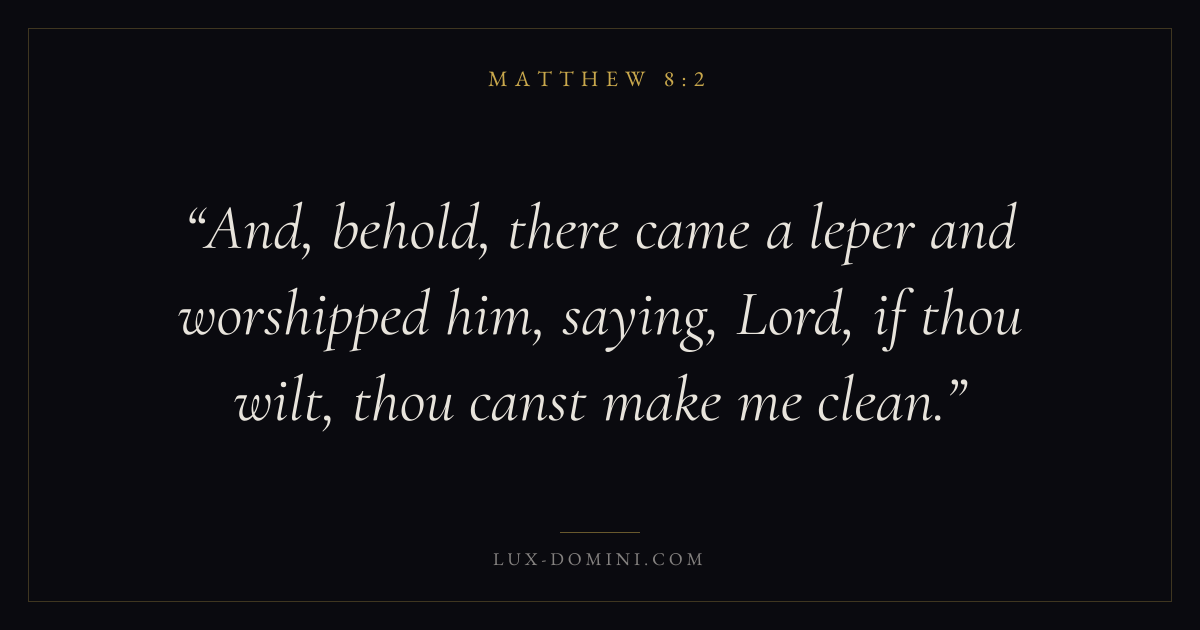 And, behold, there came a leper and worshipped him, saying, Lord, if thou wilt, thou canst make me clean.