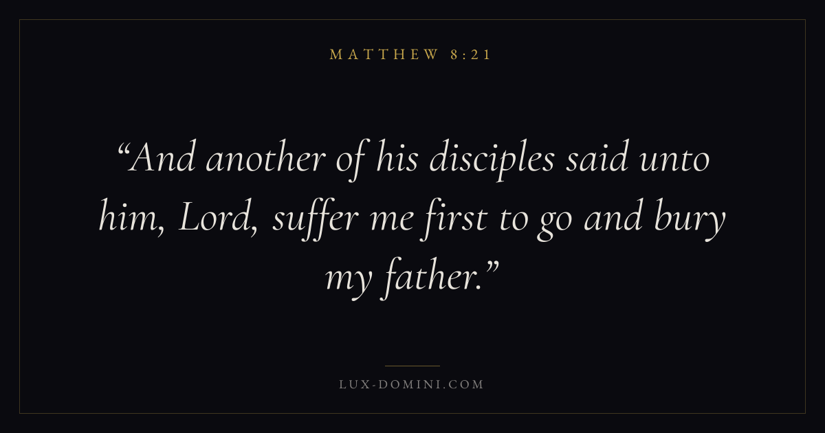 And another of his disciples said unto him, Lord, suffer me first to go and bury my father.