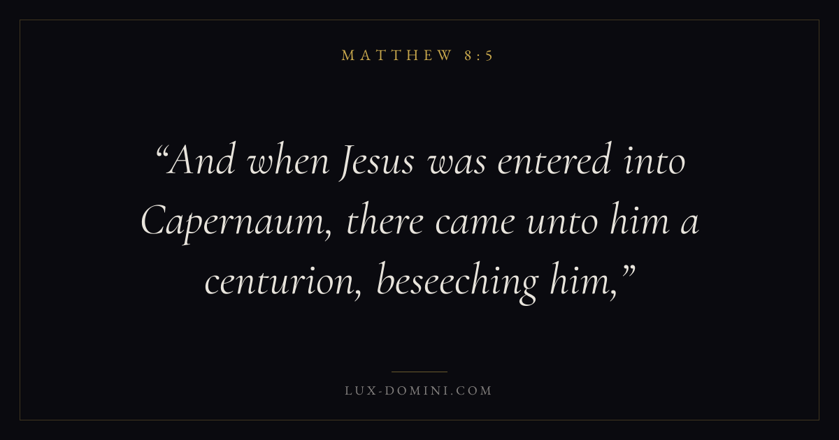 And when Jesus was entered into Capernaum, there came unto him a centurion, beseeching him,