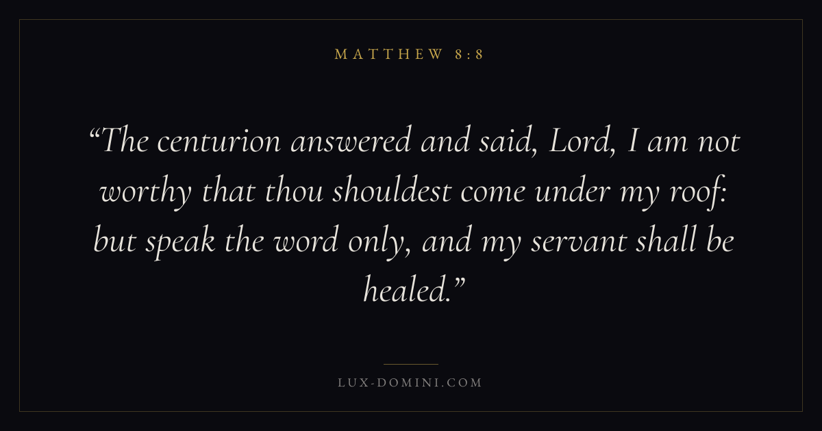 The centurion answered and said, Lord, I am not worthy that thou shouldest come under my roof: but speak the word only, and my servant shall be healed.