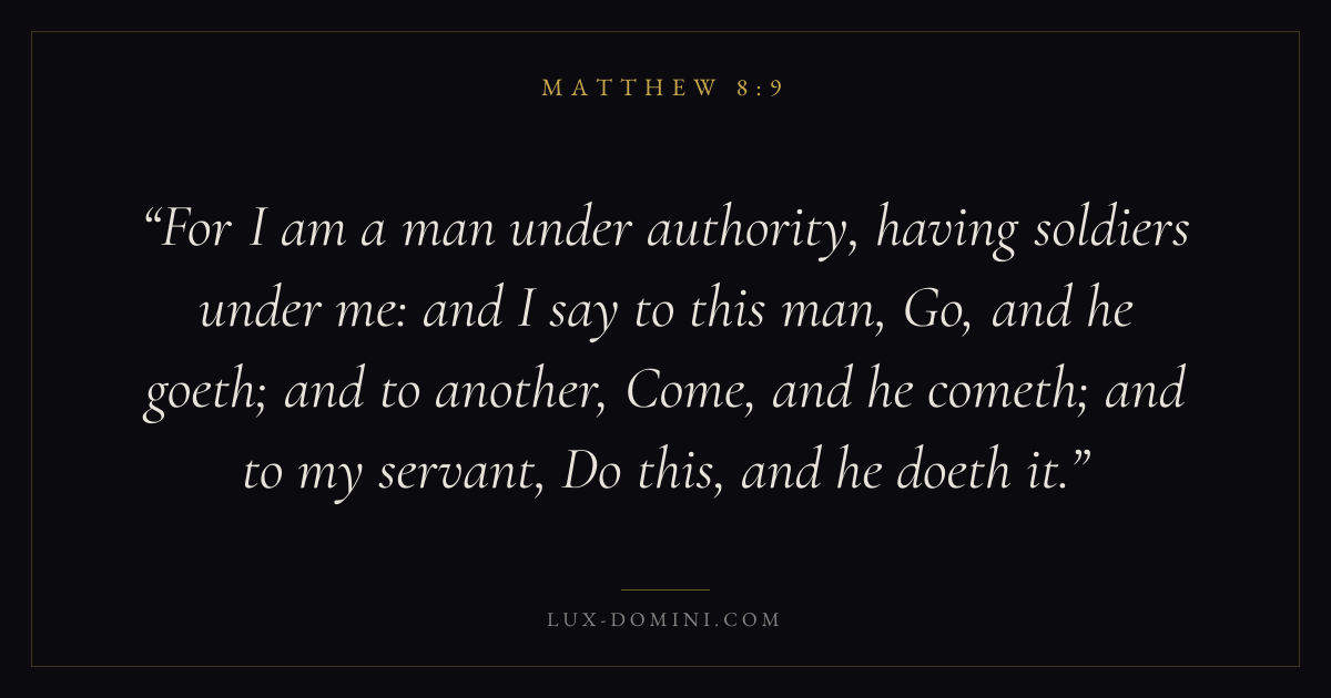 For I am a man under authority, having soldiers under me: and I say to this man, Go, and he goeth; and to another, Come, and he cometh; and to my servant, Do this, and he doeth it.