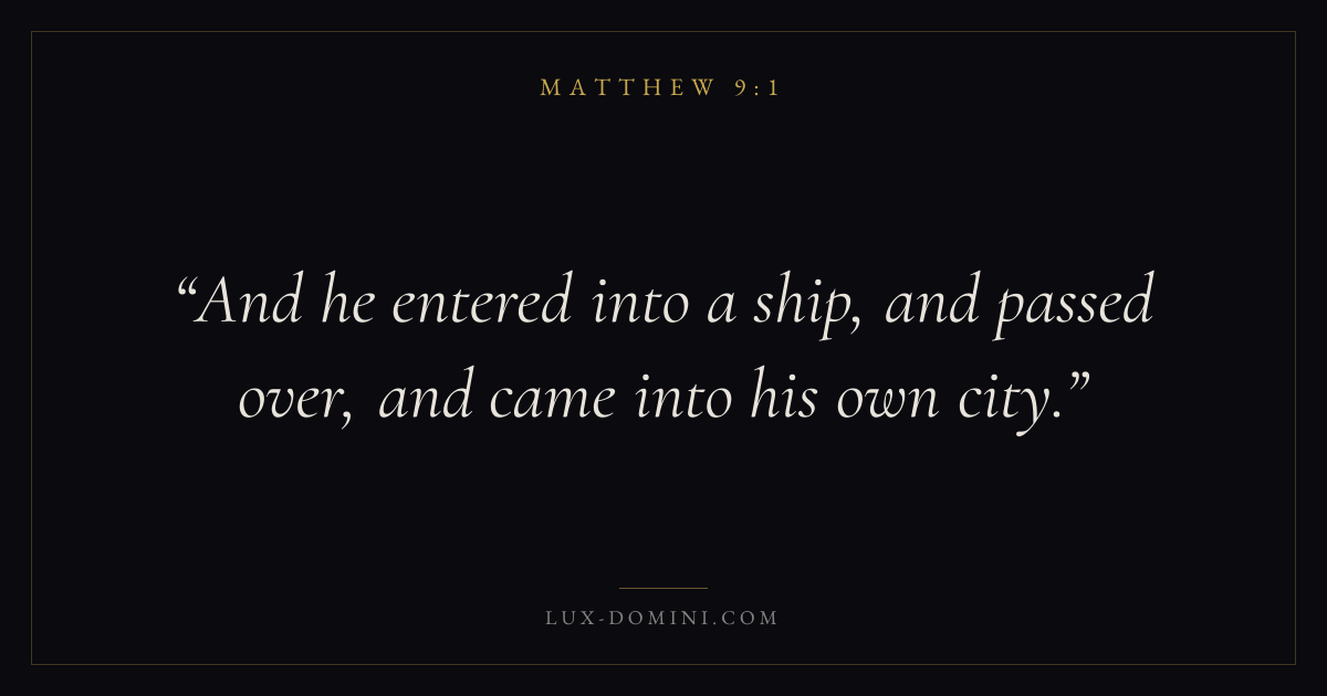 And he entered into a ship, and passed over, and came into his own city.
