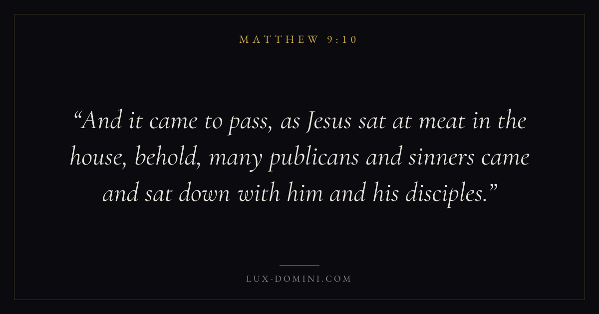 And it came to pass, as Jesus sat at meat in the house, behold, many publicans and sinners came and sat down with him and his disciples.