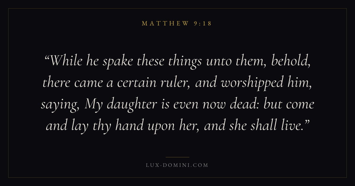 While he spake these things unto them, behold, there came a certain ruler, and worshipped him, saying, My daughter is even now dead: but come and lay thy hand upon her, and she shall live.