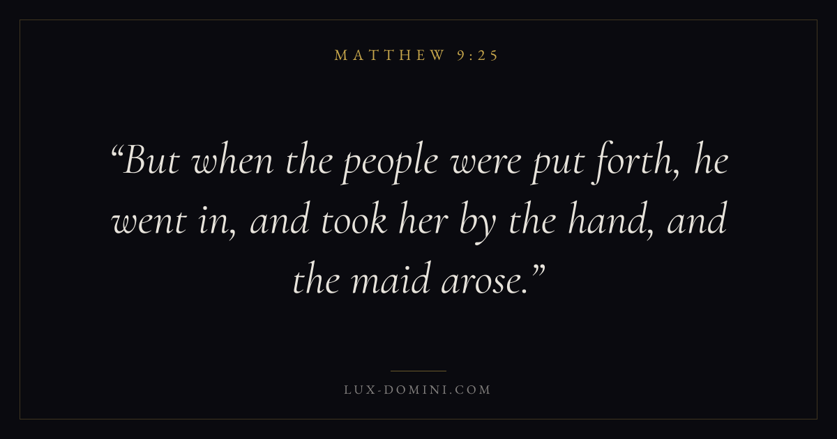 But when the people were put forth, he went in, and took her by the hand, and the maid arose.