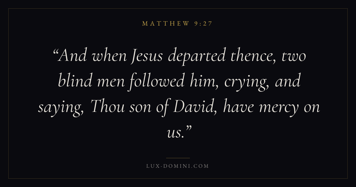 And when Jesus departed thence, two blind men followed him, crying, and saying, Thou son of David, have mercy on us.