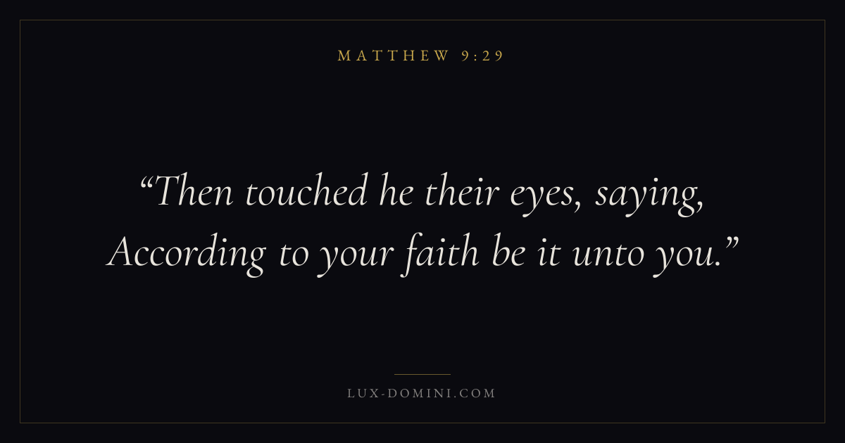 Then touched he their eyes, saying, According to your faith be it unto you.