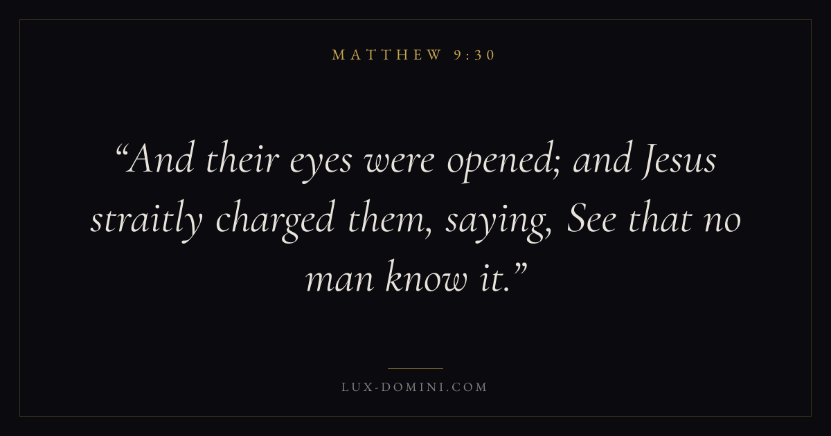 And their eyes were opened; and Jesus straitly charged them, saying, See that no man know it.