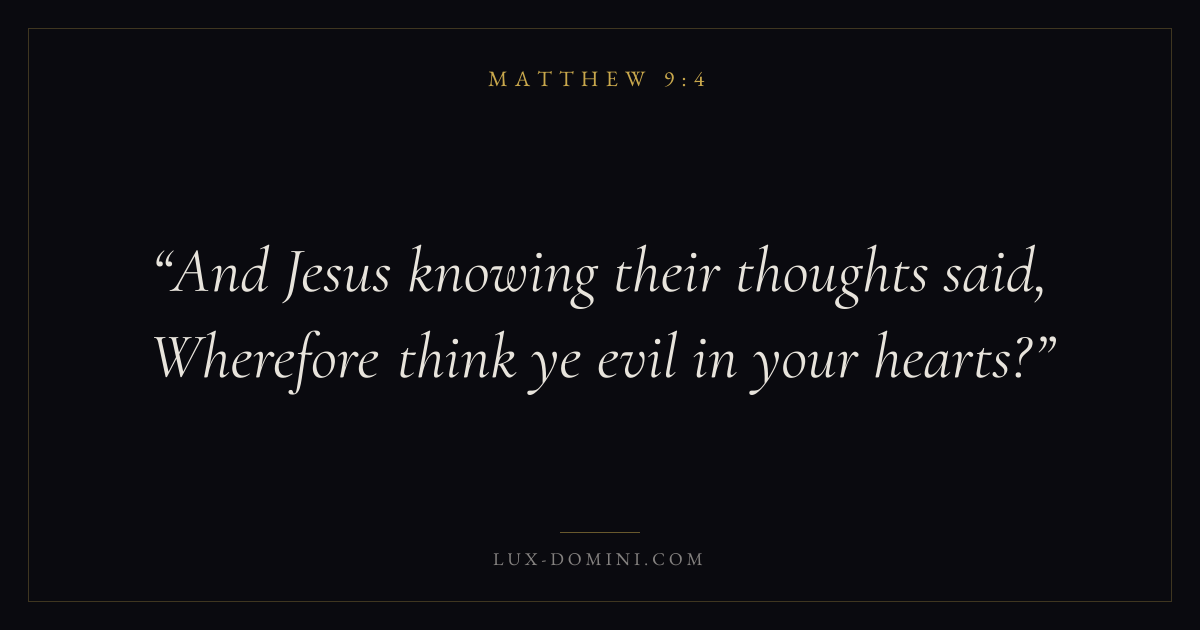 And Jesus knowing their thoughts said, Wherefore think ye evil in your hearts?