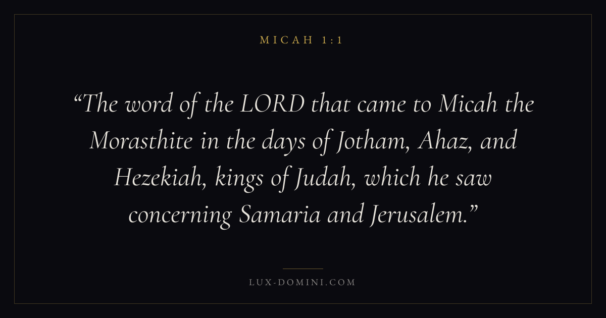 The word of the LORD that came to Micah the Morasthite in the days of Jotham, Ahaz, and Hezekiah, kings of Judah, which he saw concerning Samaria and Jerusalem.