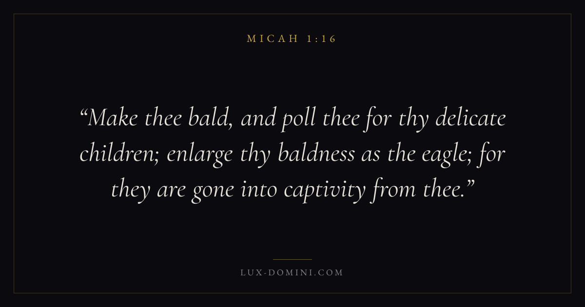 Make thee bald, and poll thee for thy delicate children; enlarge thy baldness as the eagle; for they are gone into captivity from thee.