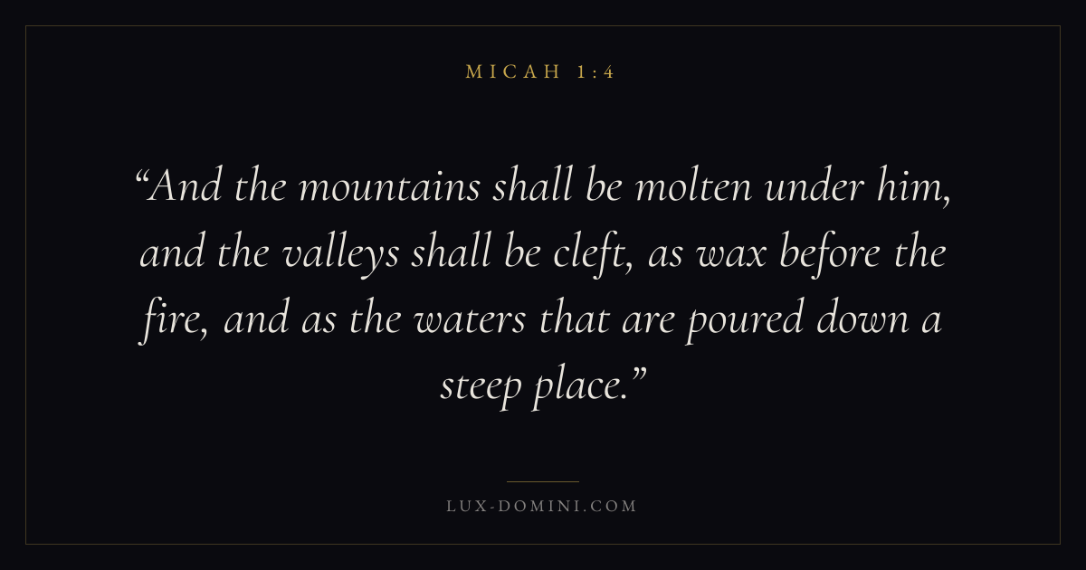 And the mountains shall be molten under him, and the valleys shall be cleft, as wax before the fire, and as the waters that are poured down a steep place.