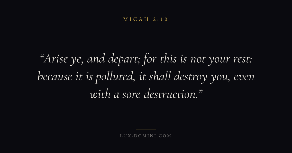Arise ye, and depart; for this is not your rest: because it is polluted, it shall destroy you, even with a sore destruction.