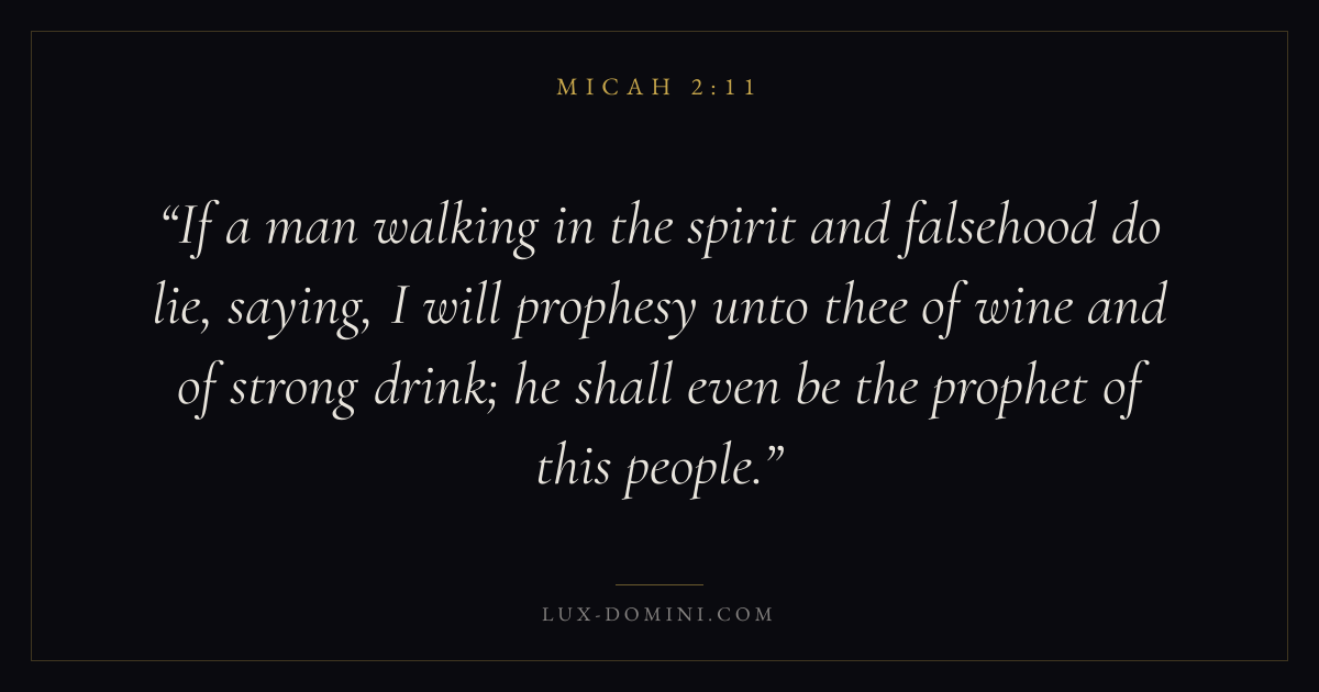 If a man walking in the spirit and falsehood do lie, saying, I will prophesy unto thee of wine and of strong drink; he shall even be the prophet of this people.