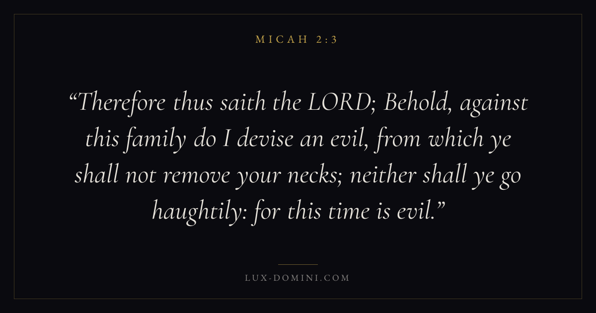 Therefore thus saith the LORD; Behold, against this family do I devise an evil, from which ye shall not remove your necks; neither shall ye go haughtily: for this time is evil.