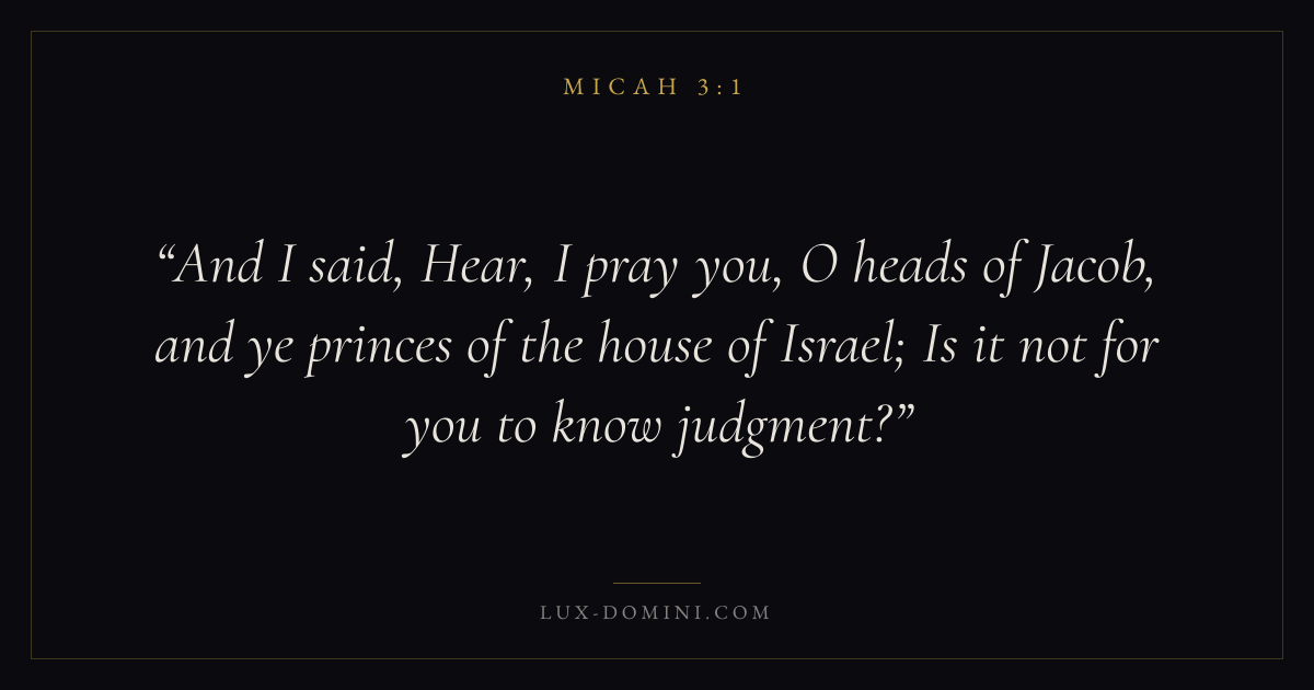 And I said, Hear, I pray you, O heads of Jacob, and ye princes of the house of Israel; Is it not for you to know judgment?