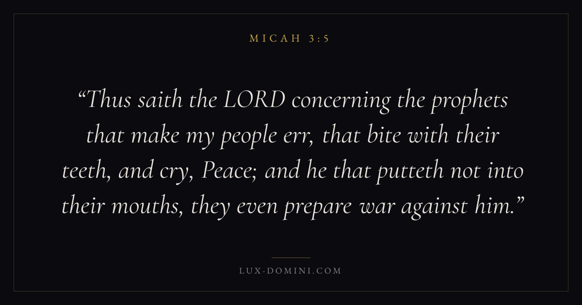 Thus saith the LORD concerning the prophets that make my people err, that bite with their teeth, and cry, Peace; and he that putteth not into their mouths, they even prepare war against him.