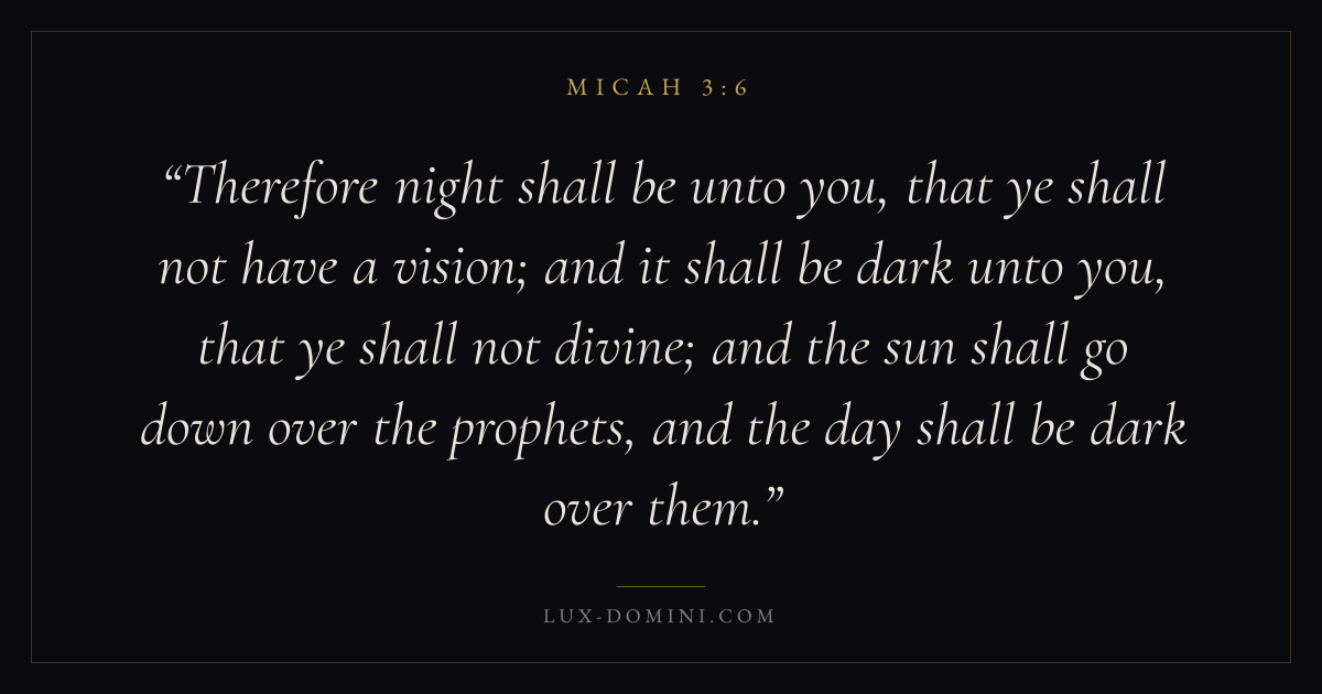 Therefore night shall be unto you, that ye shall not have a vision; and it shall be dark unto you, that ye shall not divine; and the sun shall go down over the prophets, and the day shall be dark over them.