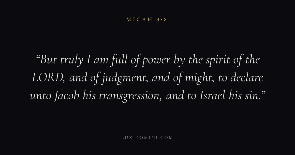 But truly I am full of power by the spirit of the LORD, and of judgment, and of might, to declare unto Jacob his transgression, and to Israel his sin.