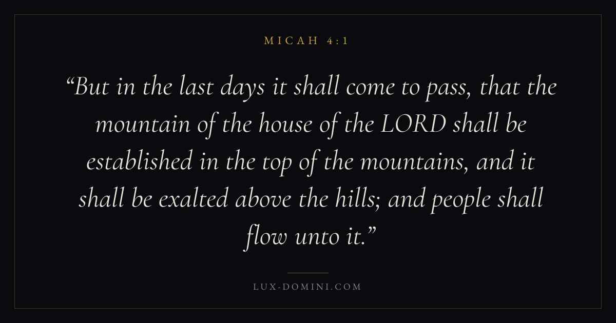 But in the last days it shall come to pass, that the mountain of the house of the LORD shall be established in the top of the mountains, and it shall be exalted above the hills; and people shall flow unto it.