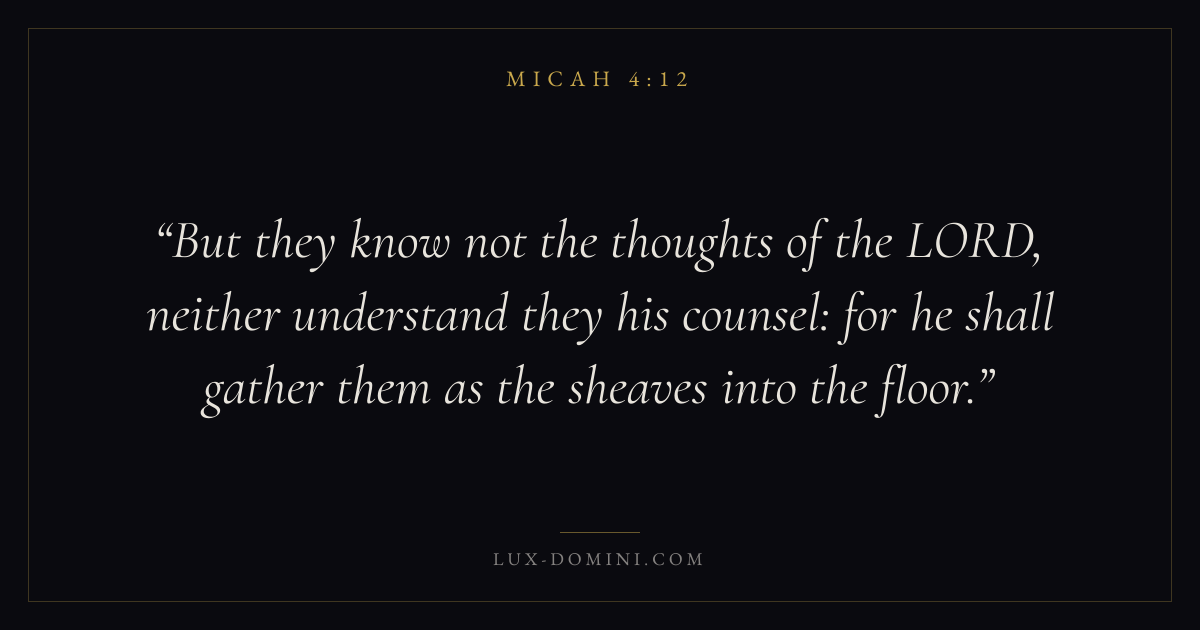 But they know not the thoughts of the LORD, neither understand they his counsel: for he shall gather them as the sheaves into the floor.