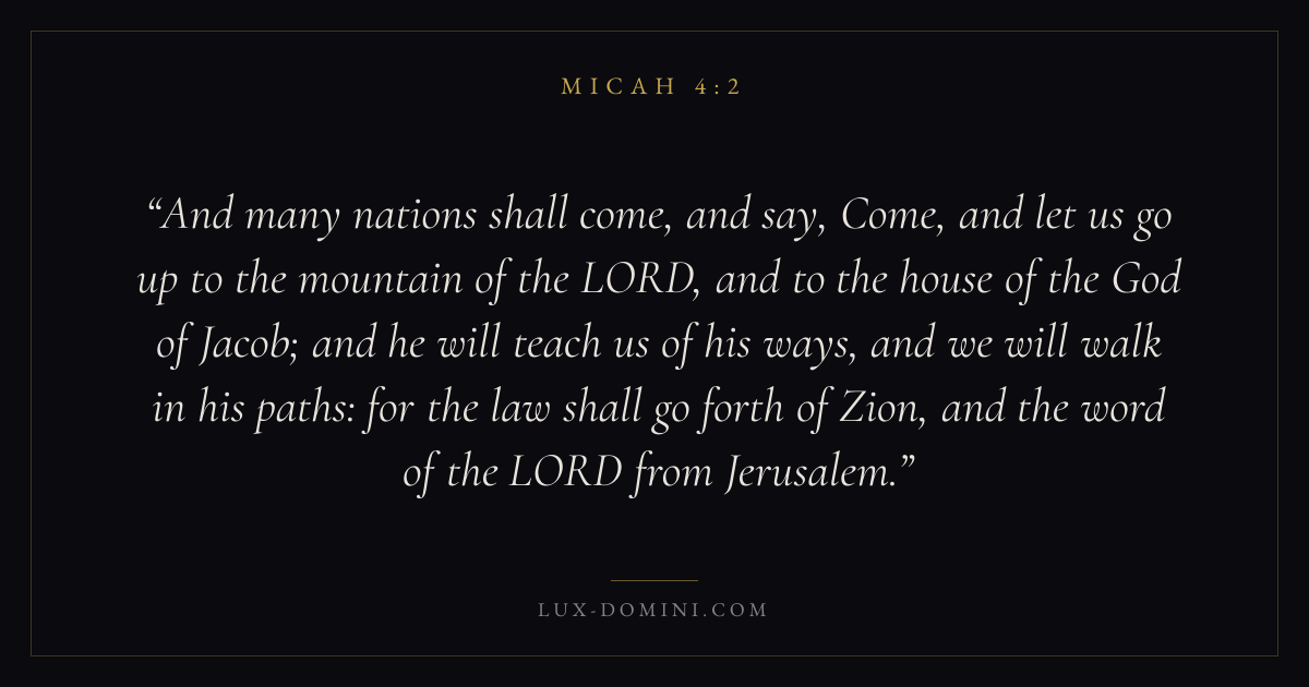 And many nations shall come, and say, Come, and let us go up to the mountain of the LORD, and to the house of the God of Jacob; and he will teach us of his ways, and we will walk in his paths: for the law shall go forth of Zion, and the word of the LORD from Jerusalem.
