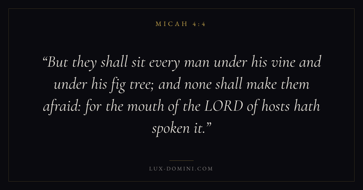 But they shall sit every man under his vine and under his fig tree; and none shall make them afraid: for the mouth of the LORD of hosts hath spoken it.