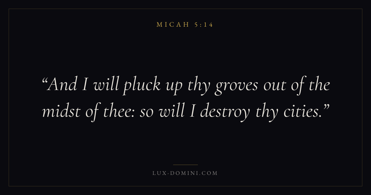 And I will pluck up thy groves out of the midst of thee: so will I destroy thy cities.