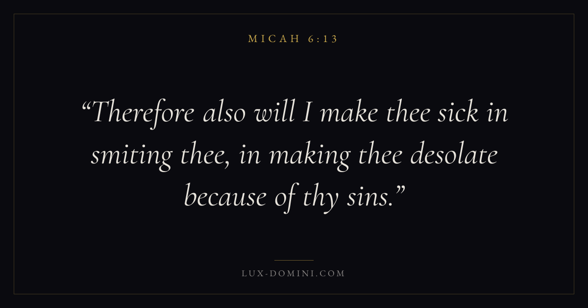Therefore also will I make thee sick in smiting thee, in making thee desolate because of thy sins.