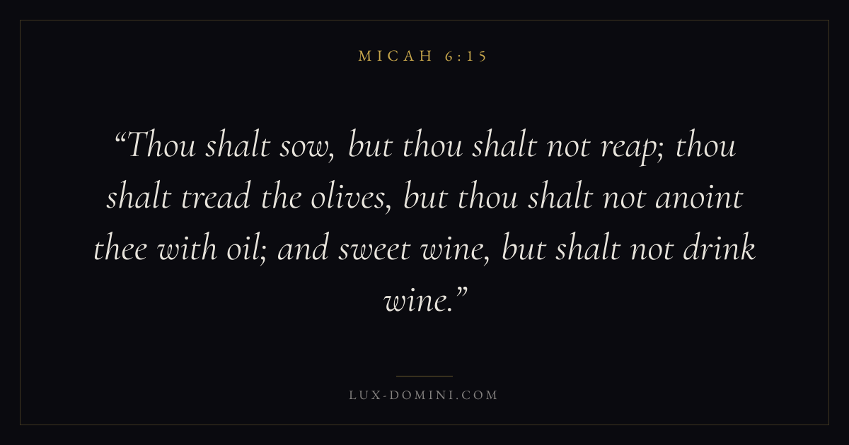 Thou shalt sow, but thou shalt not reap; thou shalt tread the olives, but thou shalt not anoint thee with oil; and sweet wine, but shalt not drink wine.