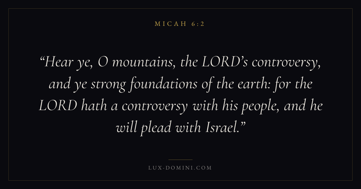 Hear ye, O mountains, the LORD’s controversy, and ye strong foundations of the earth: for the LORD hath a controversy with his people, and he will plead with Israel.