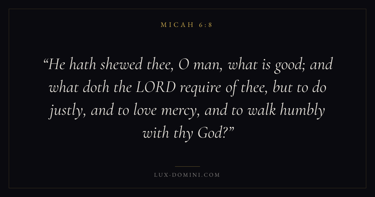 He hath shewed thee, O man, what is good; and what doth the LORD require of thee, but to do justly, and to love mercy, and to walk humbly with thy God?