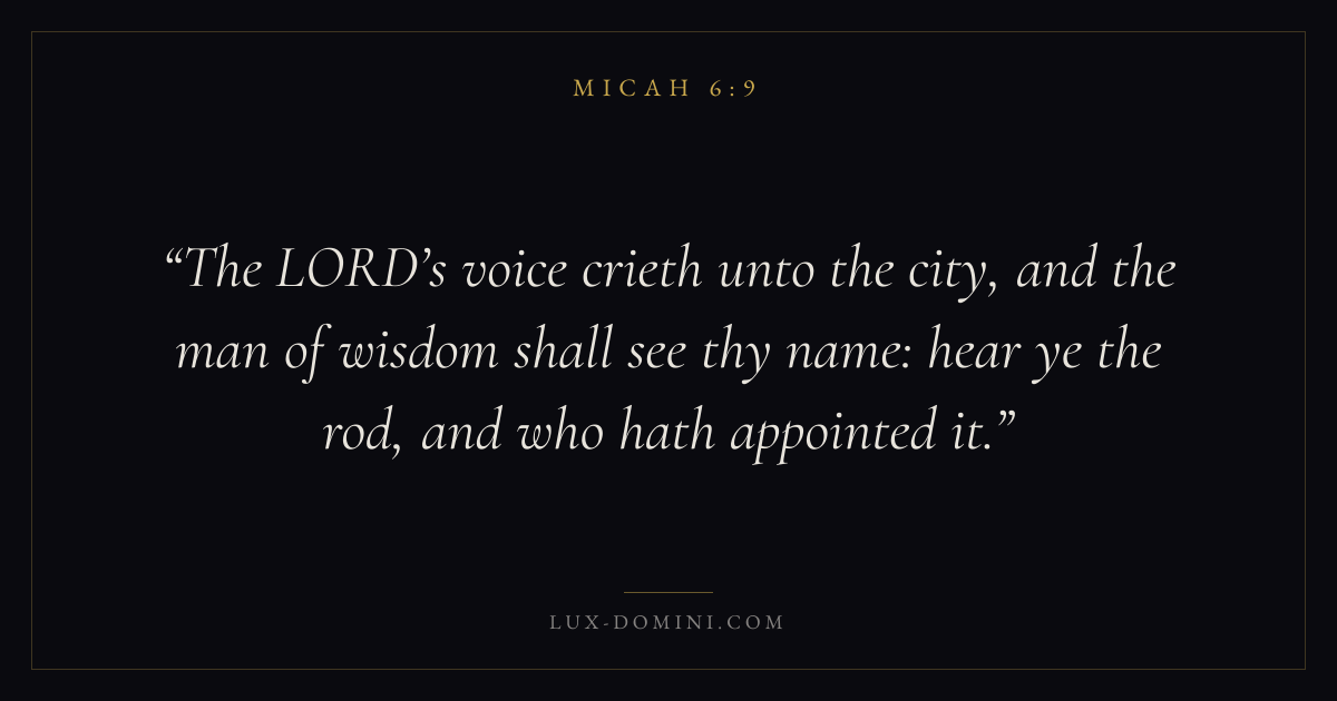 The LORD’s voice crieth unto the city, and the man of wisdom shall see thy name: hear ye the rod, and who hath appointed it.