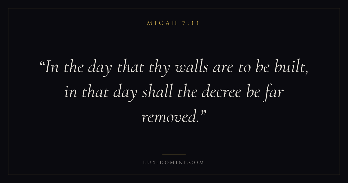 In the day that thy walls are to be built, in that day shall the decree be far removed.