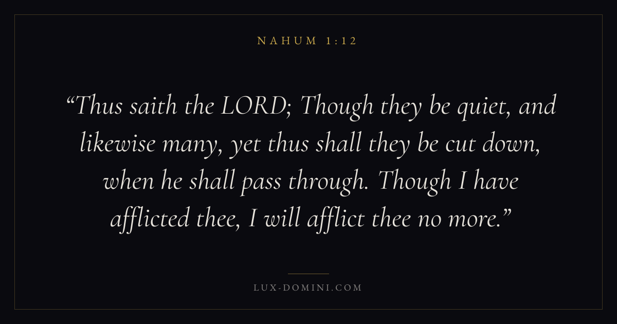 Thus saith the LORD; Though they be quiet, and likewise many, yet thus shall they be cut down, when he shall pass through. Though I have afflicted thee, I will afflict thee no more.
