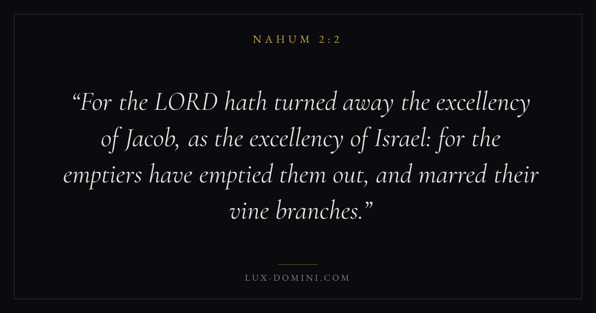 For the LORD hath turned away the excellency of Jacob, as the excellency of Israel: for the emptiers have emptied them out, and marred their vine branches.