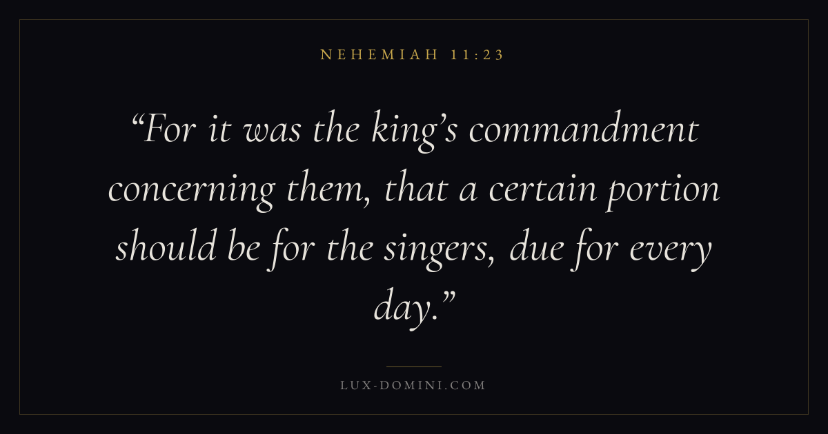 For it was the king’s commandment concerning them, that a certain portion should be for the singers, due for every day.