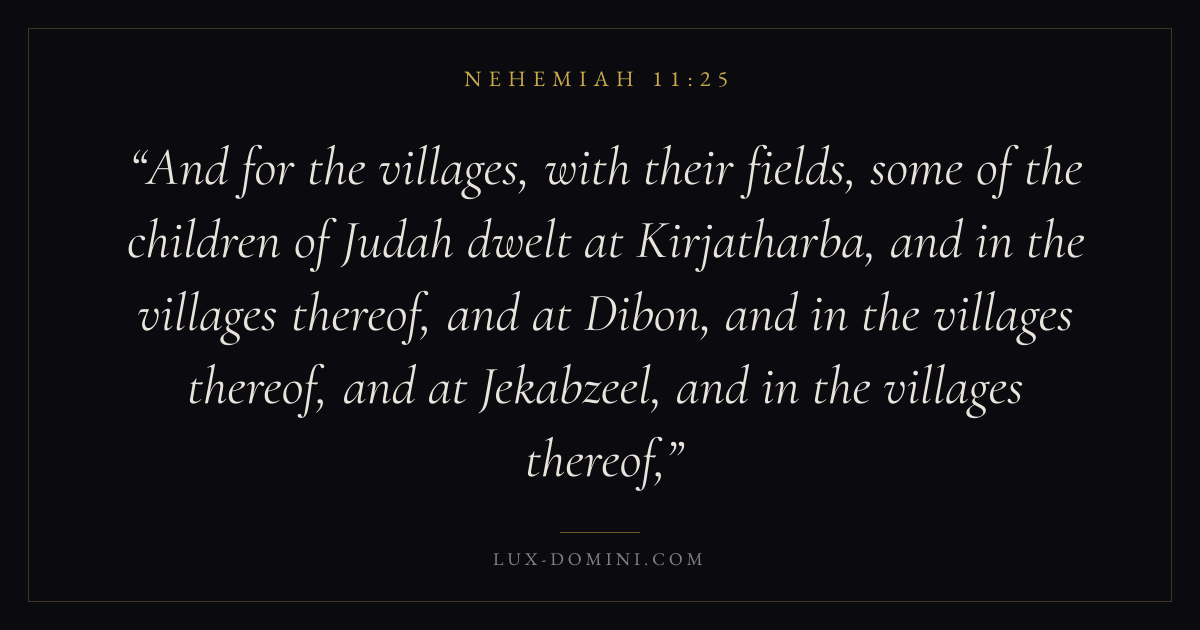 And for the villages, with their fields, some of the children of Judah dwelt at Kirjatharba, and in the villages thereof, and at Dibon, and in the villages thereof, and at Jekabzeel, and in the villages thereof,