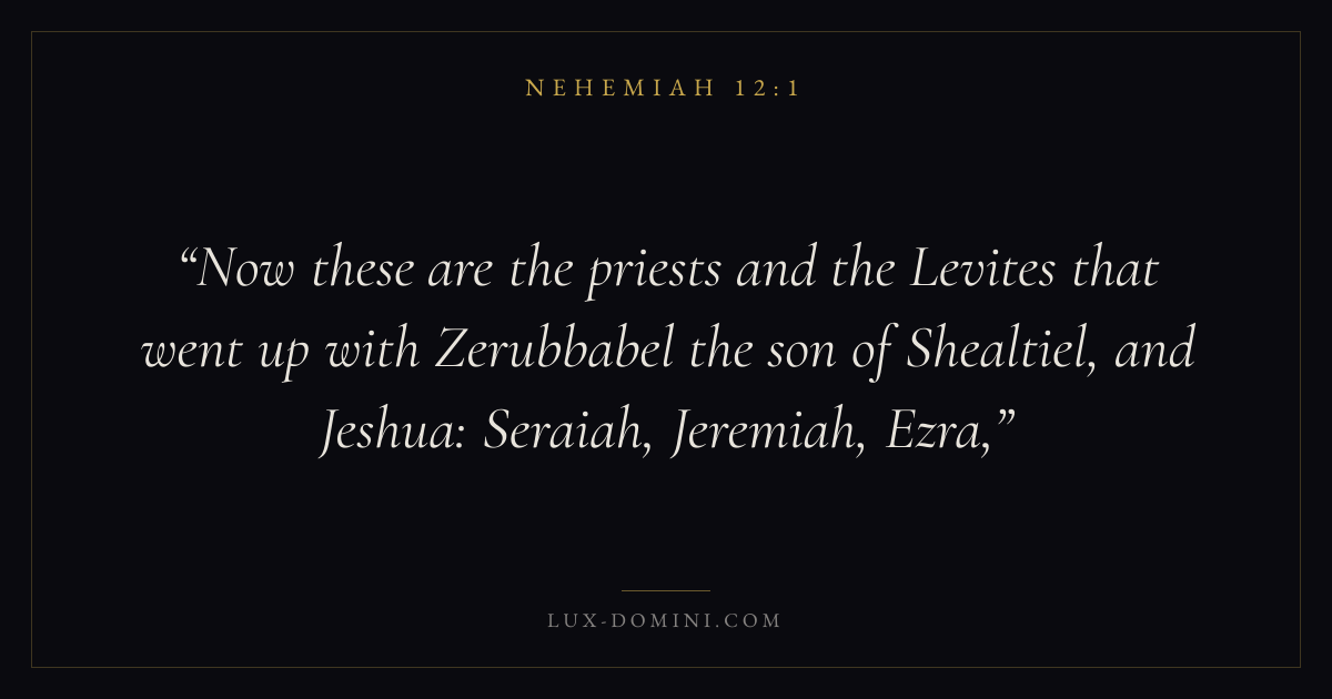 Now these are the priests and the Levites that went up with Zerubbabel the son of Shealtiel, and Jeshua: Seraiah, Jeremiah, Ezra,