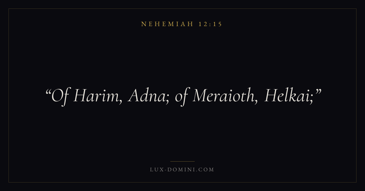 Of Harim, Adna; of Meraioth, Helkai;